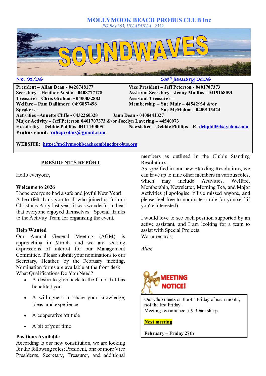Mollymook Beach Probus Club takes pride in being part of this wonderful celebration.